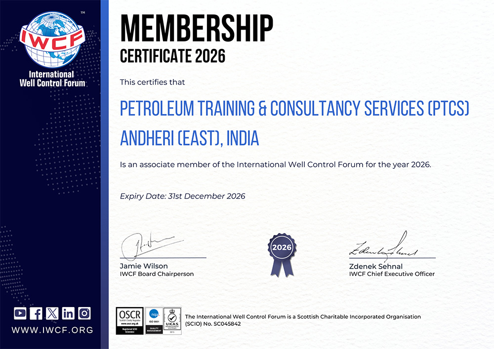 Welcome to Petroleum Training & Consultancy Services (PTCS) an IWCF & IADC accredited training center providing ‘Surface Well Control Training Courses’ from basic industry awareness to Drilling Performance Improvement. PTCS established in 2010 has long been recognized as a leading ‘Well Control Training’ School in Mumbai. Conducting Rotary Drilling Well Control Courses is the core activity of PTCS which is reflecting as our Well Control courses schedule for drilling industry.