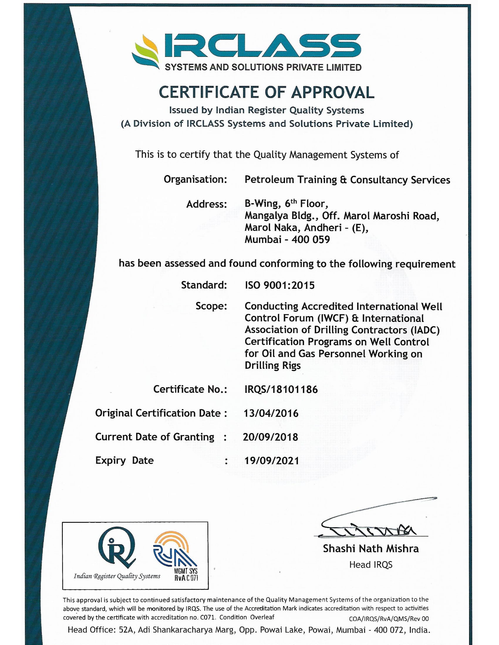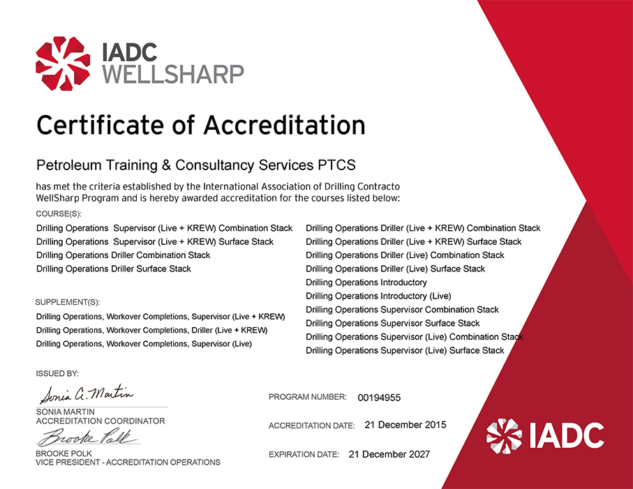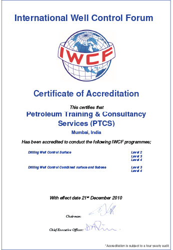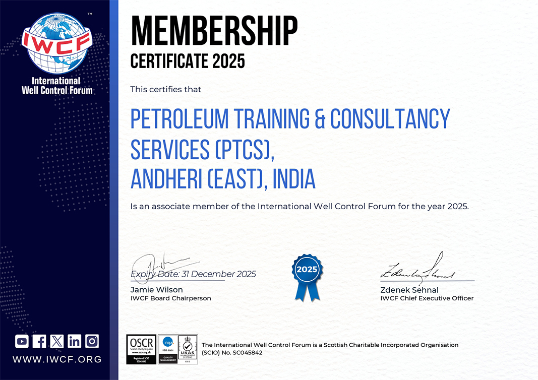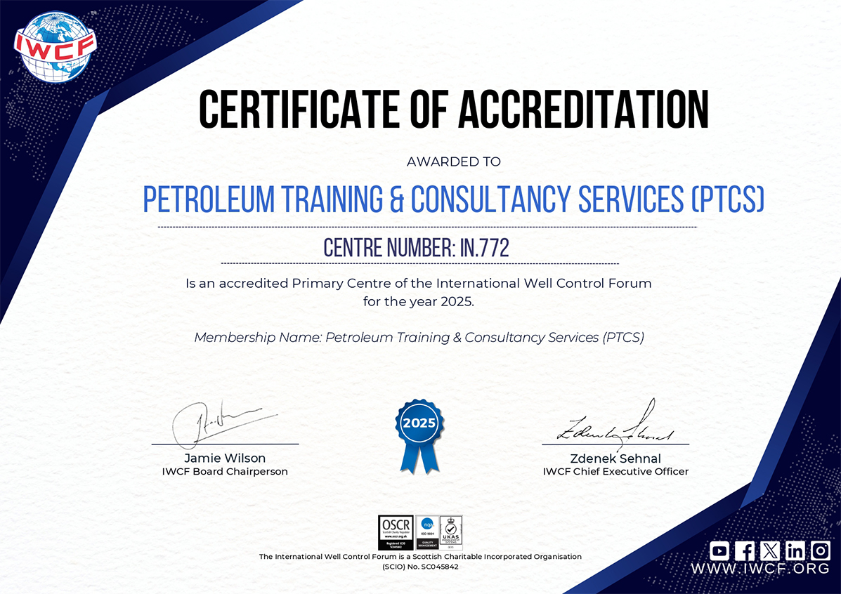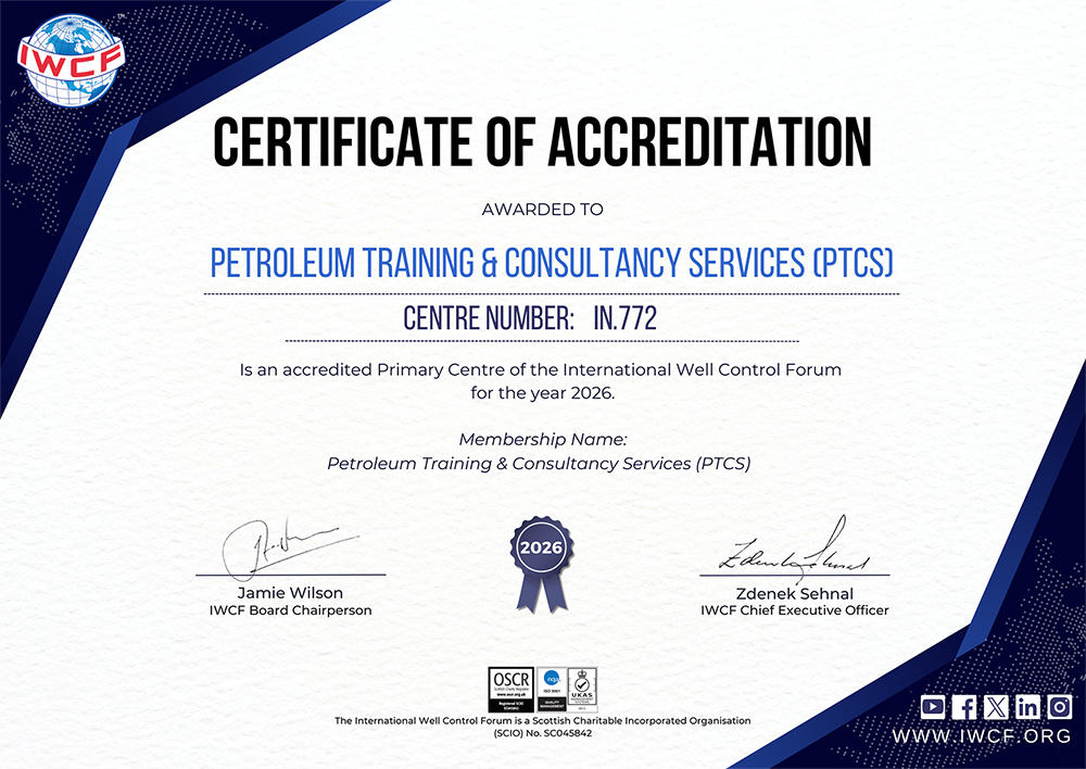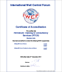 Welcome to Petroleum Training & Consultancy Services (PTCS) an IWCF & IADC accredited training center providing ‘Surface Well Control Training Courses’ from basic industry awareness to Drilling Performance Improvement. PTCS established in 2010 has long been recognized as a leading ‘Well Control Training’ School in Mumbai. Conducting Rotary Drilling Well Control Courses is the core activity of PTCS which is reflecting as our Well Control courses schedule for drilling industry.
